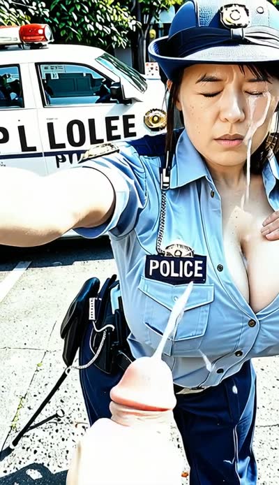 ((She is getting covered in cum while bouncing her breasts up and down))