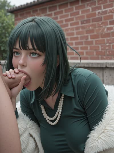 The woman in the green dress does an air blowjob gesture with her right hand