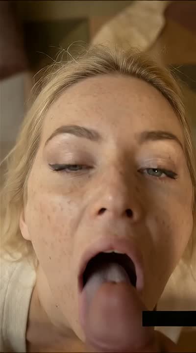 The blonde women opens her mouth to recieve a load of cum