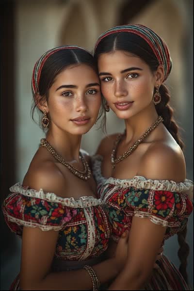Bring the image to life, the two beautiful women kiss while their tops fall