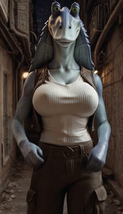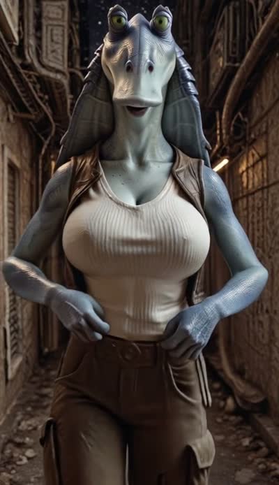 Gungan is walking towards the viewer