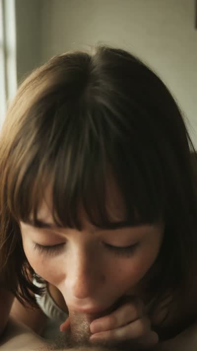 Pov of a crying girl putting large cock all the way into her mouth and gives