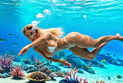 Realistic, smooth motion, She maintains her pose emersed in the water