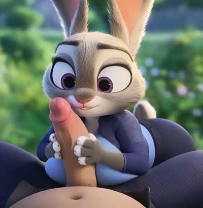 A busty furry rabbit gentle stroke and handjob penis up-down, Looking at viewer