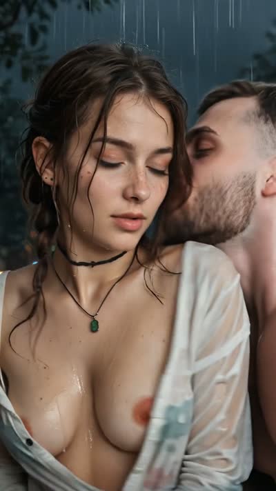 POV of a handsome naked man, he takes off the woman's clothes until her breasts
