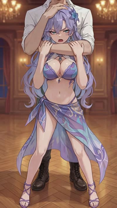 A man keeps a female victim restrained from behind in a rear naked choke hold