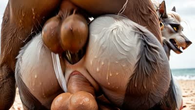 A anthro worgen is being fucked by two men in double penetration, gang bang