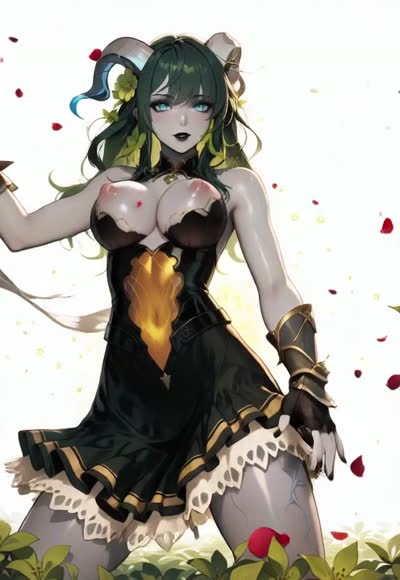 (SmoothMixAnime), A black-haired horny woman with white eyes squatting holding