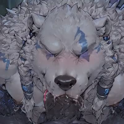 Bear sucking penis, he moves his head up and down while he sucks the penis