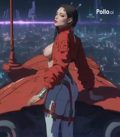 Hot sci-fi woman facing away turns around, bare breasts, extremely beautiful