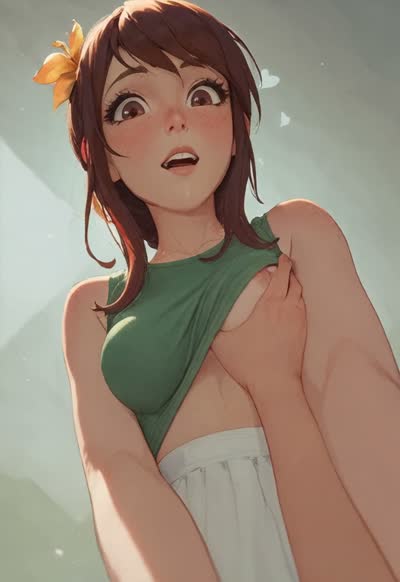 Nsfwsks, seductively looking at viewer, viewer is playing with her breasts