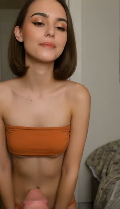 Woman looks at viewer with pretty eyes and smirks An overhead view of a woman
